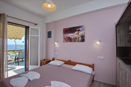 In der Unterkunft Αlexandros apartment sind alle Zimmer versehen mit einer Klimaanlage, einem Kleiderschrank, einem Flachbild-TV, einem eigenen Badezimmer, Bettwäsche, Handtüchern und einer Terrasse mit Stadtblick. Die Gästezimmer bieten den Gästen einen Kühlschrank.