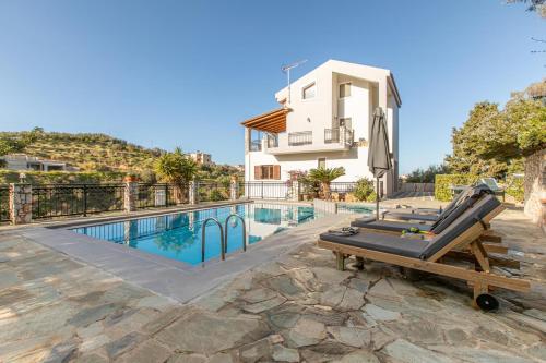 Gelegen in Stalós, bietet die Unterkunft Dimosthenis bu Vintage Travel Übernachtungsmöglichkeiten mit einem eigenen Pool. Diese Villa besticht durch Meerblick, einen Pool und besticht außerdem durch kostenloses WLAN.