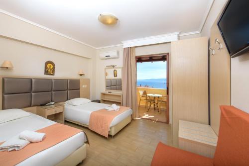 Enjoying free internet access, rooms at Ouranoupolis Princess are air conditioned and tastefully decorated. They are equipped with a satellite LCD TV, fridge and hairdryer. Some rooms also feature a private balcony.