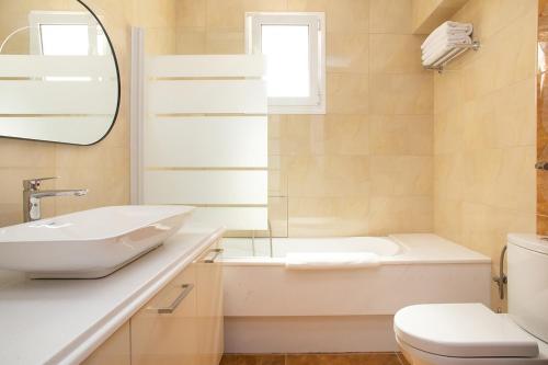 Diese Villa mit Klimaanlage besteht aus 3 Schlafzimmern, einem Wohnzimmer, einer voll ausgestatteten Küche mit einem Kühlschrank und einer Kaffeemaschine sowie 3 Badezimmern mit einem Bidet und einer Dusche. In dieser Villa werden Handtücher und Bettwäsche zur Verfügung gestellt.