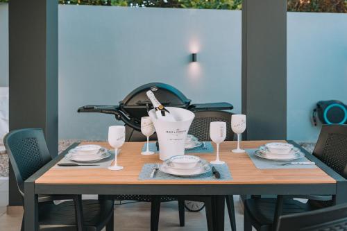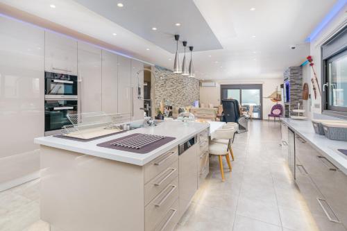 Dieses Ferienhaus mit Klimaanlage besteht aus 3 Schlafzimmern, einem Wohnzimmer, einer voll ausgestatteten Küche mit einem Kühlschrank und einer Kaffeemaschine sowie 3 Badezimmern mit einer Dusche und kostenlosen Pflegeprodukten. In diesem Ferienhaus werden Handtücher und Bettwäsche angeboten.
