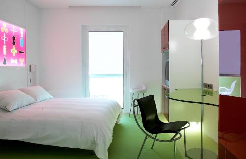 Sowohl die Zimmer als auch die öffentlichen Bereiche des Hotels tragen die unverwechselbare Handschrift von Rashid. Die zarten Töne in Rosa, Grün, Orange und Gelb an Wänden, Böden, Möbeln und Einrichtungen erzeugen eine energetische Atmosphäre.