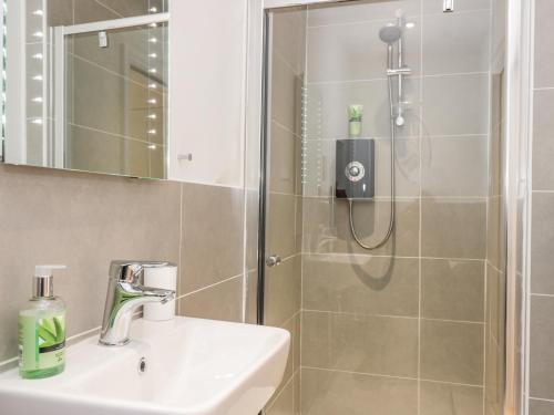 Dieses Ferienhaus bietet 1 Schlafzimmer, einen TV, eine gut ausgestattete Küche mit einem Kühlschrank und einem Geschirrspüler sowie 1 Badezimmer mit einer Dusche.