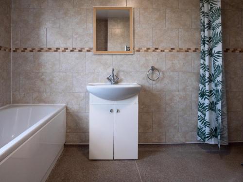 Dieses Ferienhaus mit einer Veranda / Patio und Gartenblick hat 5 Schlafzimmer, ein Wohnzimmer, einen Flachbild-TV, eine gut ausgestattete Küche mit einem Kühlschrank und einer Mikrowelle sowie 5 Badezimmer mit einer Dusche. In diesem Ferienhaus werden Handtücher und Bettwäsche zur Verfügung gestellt.