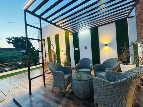 Die Unterkunft Tiya's Hospitality, die über einen Garten, eine Gemeinschaftslounge und eine Terrasse verfügt, bietet Übernachtungsmöglichkeiten in Prayagraj mit kostenlosem WLAN und Gartenblick. Dieses Ferienhaus bietet einen kostenlosen Privatparkplatz und einen Geldautomaten.