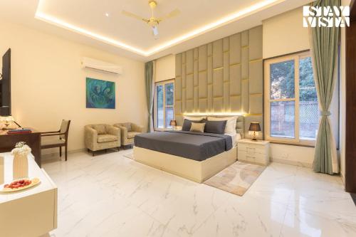Die Unterkunft StayVista at Villa Solace with Lawn, die über einen Außenpool, einen Garten und eine Bar verfügt, bietet Übernachtungsmöglichkeiten in Chandīgarh mit kostenlosem WLAN und Poolblick. Diese Unterkunft bietet Zugang zu einem eigenen Pool und einem kostenlosen Privatparkplatz.
