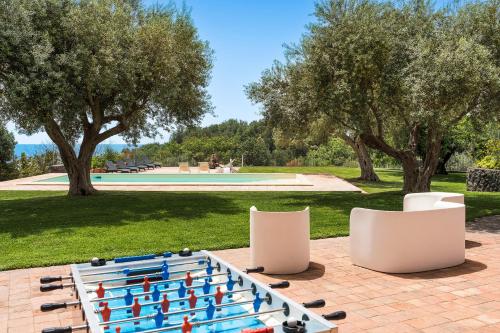 Diese Villa ist ausgestattet mit 6 Schlafzimmern, 6 Badezimmern, Bettwäsche. Handtüchern, einem TV mit Satellitenkanälen, einer voll ausgestatteten Küche und einer Terrasse mit Meerblick.