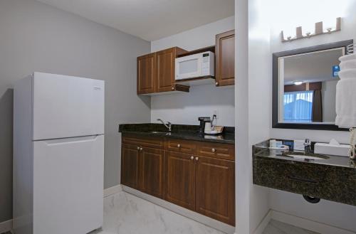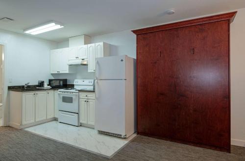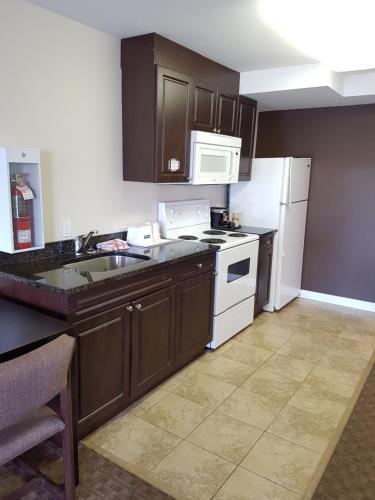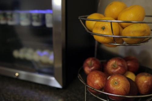 Die Zimmer verfügen über eine Mikrowelle, einen Kühlschrank und eine Kaffeemaschine. Ein Sitzbereich und ein Schreibtisch sind ebenfalls vorhanden. Suiten mit Schlafsofas und Küchenzeilen sind verfügbar.