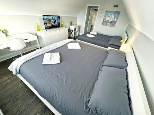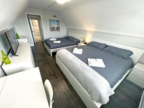 Diese Ferienwohnung mit Klimaanlage besteht aus 2 Schlafzimmern, einem Wohnzimmer, einer voll ausgestatteten Küche mit einem Kühlschrank und einer Kaffeemaschine sowie 1 Badezimmer mit einer Dusche und kostenlosen Pflegeprodukten. Es gibt einen Flachbild-TV mit Satellitenkanälen, eine Spielekonsole sowie ein iPad.