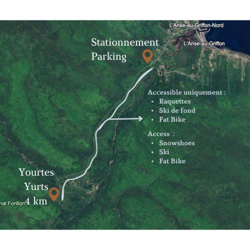 Die Unterkunft Yourtes Forillon mit Bergblick in Gaspé bietet Übernachtungsmöglichkeiten mit einem direkten Zugang zur Skipiste.