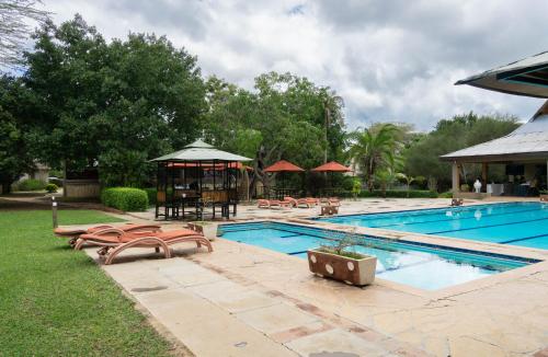 Die Unterkunft Lukenya Getaway, die in Athi River, 37 km von Internationales Kongresszentrum Kenyatta entfernt gelegen ist, verfügt über Übernachtungsmöglichkeiten mit einem Garten, einem kostenlosen Privatparkplatz, einer Gemeinschaftslounge und einer Terrasse. Die Unterkunft liegt 39 km von Nairobi National Museum, 22 km von Nairobi SGR Terminus und 32 km von Jihan Freighters Limited entfernt. Die Unterkunft bietet eine rund um die Uhr besetzte Rezeption, Flughafentransfers, einen Zimmerservice und kostenloses WLAN in der ganzen Unterkunft.