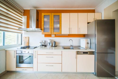 Diese Ferienwohnung ist eingerichtet mit 2 Schlafzimmern, 2 Badezimmern, Bettwäsche, Handtüchern, einem Flachbild-TV, einem Essbereich, einer voll ausgestatteten Küche und einer Terrasse mit Meerblick.