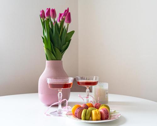 Diese Ferienwohnung ist ausgestattet mit 1 Schlafzimmer, 1 Badezimmer, Bettwäsche, Handtüchern, einem Flachbild-TV mit Kabelkanälen, einem Essbereich, einer voll ausgestatteten Küche und einem Balkon mit Stadtblick.