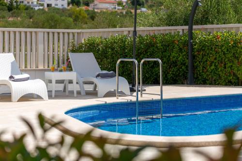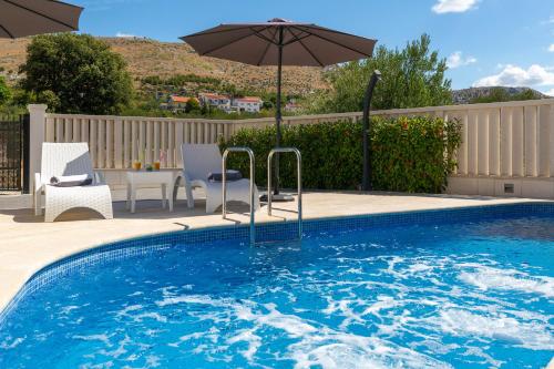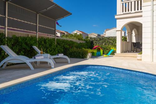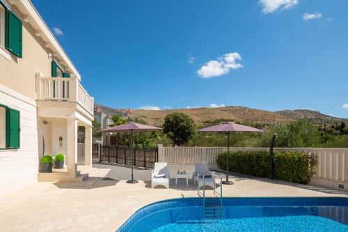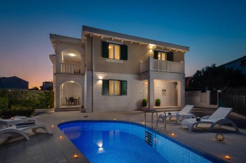 Die Unterkunft Villa Kami - 4 stars villa, Heated pool verfügt über Bergblick und einen saisonalen Außenpool, eine Gemeinschaftslounge sowie eine Terrasse, ungefähr 200 m von Strand Banovci entfernt. Diese Villa bietet einen eigenen Pool, einen Garten, einen Grill, kostenloses WLAN und einen kostenlosen Privatparkplatz.