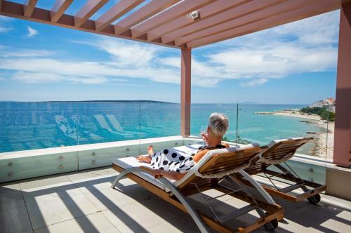 Die Unterkunft Vile Mandre bietet ihren Gästen eine Terrasse, Meerblick, einen Sitzbereich, einen Satelliten Flachbild-TV, eine voll ausgestattete Küche mit einem Kühlschrank und einem Geschirrspüler sowie ein eigenes Badezimmer mit einer Dusche und kostenlosen Pflegeprodukten. Es gibt einen Ofen, eine Herdplatte und einen Toaster sowie eine Kaffeemaschine und einen Wasserkocher.