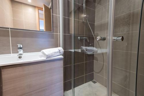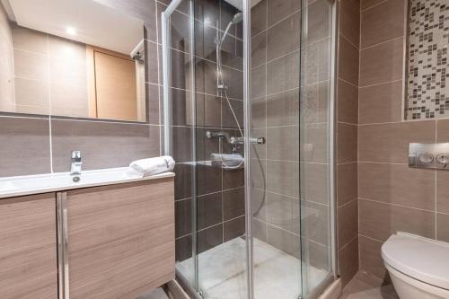 Diese Ferienwohnung mit Klimaanlage ist eingerichtet mit 1 Schlafzimmer, Flachbild-TV und einer Küche mit einem Kühlschrank und einem Geschirrspüler In dieser Ferienwohnung werden Handtücher und Bettwäsche angeboten.