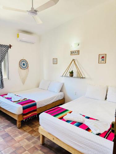 In der Unterkunft Naay Bej ist jedes Zimmer ausgestattet mit einem eigenen Badezimmer und Bettwäsche.