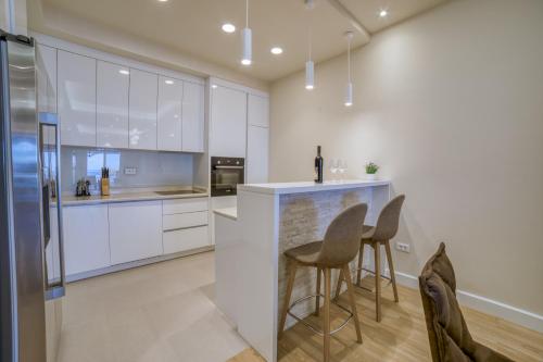 Die Unterkunft Petra's Beachfront Penthouse bietet ihren Gästen eine Terrasse, Stadtblick, einen Sitzbereich, einen Kabel Flachbild-TV, eine voll ausgestattete Küche mit einem Kühlschrank und einem Geschirrspüler sowie ein eigenes Badezimmer mit einem Bidet und kostenlosen Pflegeprodukten. Ein voll ausgestattetes eigenes Badezimmer mit einer Dusche und einem Haartrockner ist vorhanden.