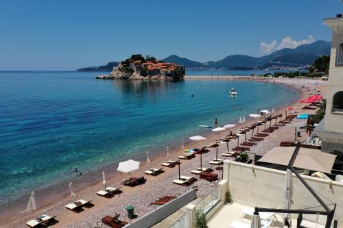 Die Unterkunft Petra's Beachfront Penthouse bietet eine Sauna und einen Whirlpool sowie klimatisierte Wohneinheiten mit kostenloses WLAN in Sveti Stefan, 50 m von Strand Sveti Stefan entfernt. Die Unterkunft hat einen Whirlpool.