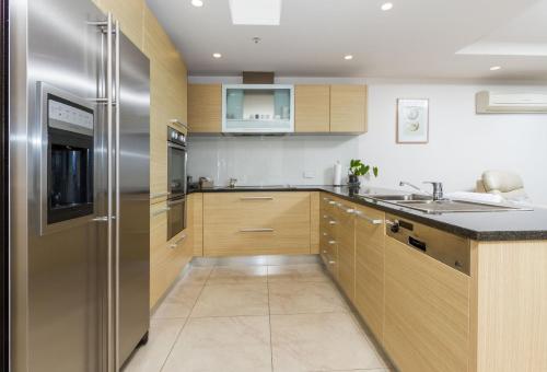 Diese Ferienwohnung mit einem Balkon und Meerblick bietet 3 Schlafzimmer, ein Wohnzimmer, einen Flachbild-TV, eine gut ausgestattete Küche mit einem Kühlschrank und einem Geschirrspüler sowie 3 Badezimmer mit einer Dusche. In dieser Ferienwohnung werden Handtücher und Bettwäsche angeboten.
