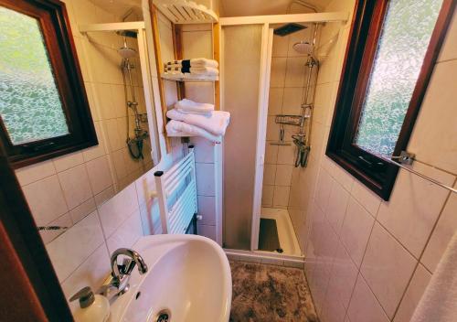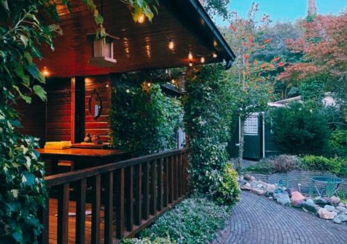 Dieses Chalet mit einer Terrasse und Gartenblick bietet 2 Schlafzimmer, ein Wohnzimmer, einen Flachbild-TV, eine gut ausgestattete Küche mit einem Kühlschrank und einem Ofen sowie 1 Badezimmer mit einer Dusche. In diesem Chalet werden Handtücher und Bettwäsche angeboten.