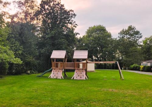 Vor Ort ist ein Kinderspielplatz verfügbar und in der unmittelbaren Umgebung der Unterkunft "De Jungle" Chalet met veranda op IJsselheide Hattemerbroek Veluwe gibt es Möglichkeiten zum Fahrradfahren.
