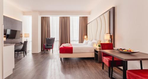 All rooms at the hotel feature air conditioning, comfortable beds, a desk, coffee and tea making facilities and a flat-screen TV. The private bathroom has a hairdryer, free toiletries and a rain shower. Studios and apartments with a kitchenette are ideal for long stays.