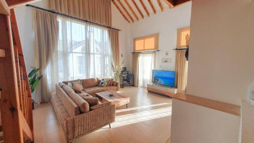 Diese Villa mit Klimaanlage besteht aus 2 Schlafzimmern, einem Wohnzimmer, einer voll ausgestatteten Küche mit einem Kühlschrank und einem Wasserkocher sowie 2 Badezimmern mit einer Dusche und einer Badewanne. Es gibt einen Flachbild-TV.