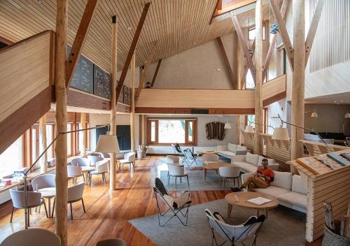 The 50 rooms have views of the cornfields and mountains. They were covered in wood and have cozy touches in the decoration, which transform them into a unique place to disconnect and enjoy the destination.