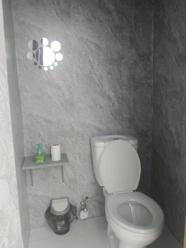 Ein voll ausgestattetes Gemeinschaftsbad mit einer Dusche und einem Haartrockner ist vorhanden.