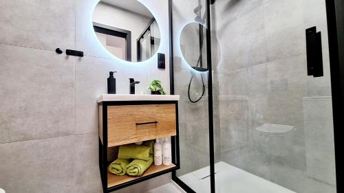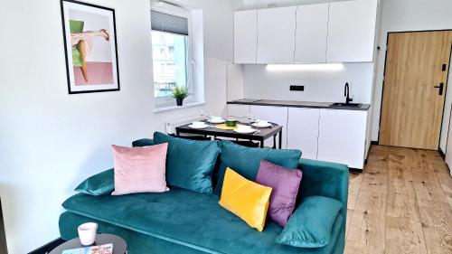 Die Unterkunft ATapartments - Zatoka bietet ihren Gästen einen Balkon, einen Sitzbereich, einen Kabel Flachbild-TV, eine voll ausgestattete Küchenzeile mit einem Kühlschrank und einem Geschirrspüler sowie ein eigenes Badezimmer mit einer Dusche und kostenlosen Pflegeprodukten. Es gibt eine Herdplatte sowie einen Wasserkocher.