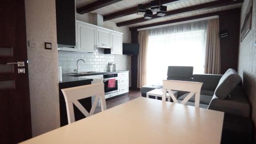 Die Unterkunft Apartamenty Leśny Zakątek bietet ihren Gästen eine Terrasse, Gartenblick, einen Sitzbereich, einen Kabel Flachbild-TV, eine voll ausgestattete Küche mit einem Kühlschrank und einem Ofen sowie ein eigenes Badezimmer mit einer Dusche und kostenlosen Pflegeprodukten. Es gibt eine Herdplatte sowie auch einen Wasserkocher.