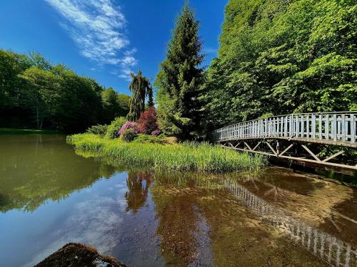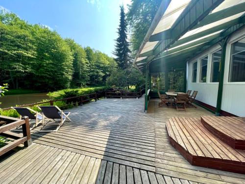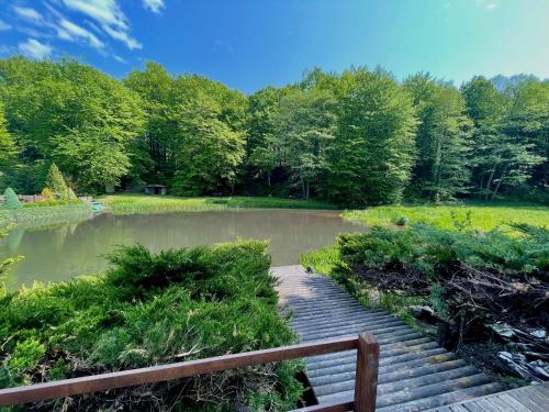Domek w głębi lasu nad stawem
