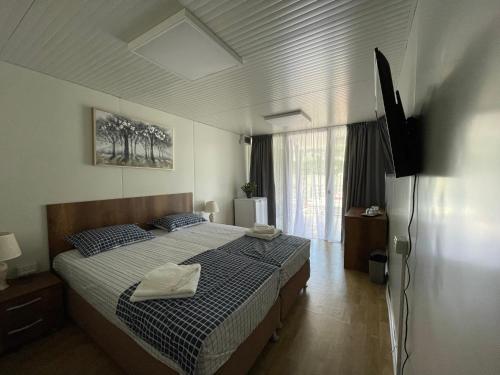In der Unterkunft Complex Turistic Emilio sind alle Zimmer ergänzt mit einer Klimaanlage, einem Schreibtisch, einem Flachbild-TV, einem eigenen Badezimmer, Bettwäsche, Handtüchern und einer Terrasse mit Bergblick. Die Zimmer bieten den Gästen einen Kühlschrank.