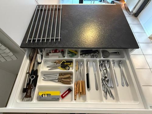 Diese Ferienwohnung mit Klimaanlage besteht aus 1 separaten Schlafzimmer, einem Wohnzimmer, einer voll ausgestatteten Küche sowie 1 Badezimmer. Es gibt einen Flachbild-TV.