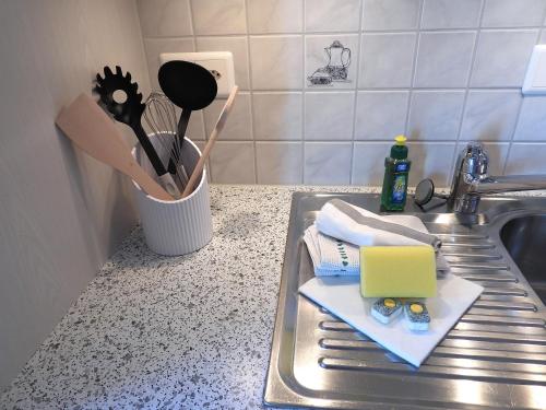 Diese Ferienwohnung mit einer Terrasse und Stadtblick hat 1 Schlafzimmer, ein Wohnzimmer, einen Flachbild-TV, eine gut ausgestattete Küche mit einem Kühlschrank und einem Geschirrspüler sowie 1 Badezimmer mit einer Dusche. In dieser Ferienwohnung werden Handtücher und Bettwäsche angeboten.