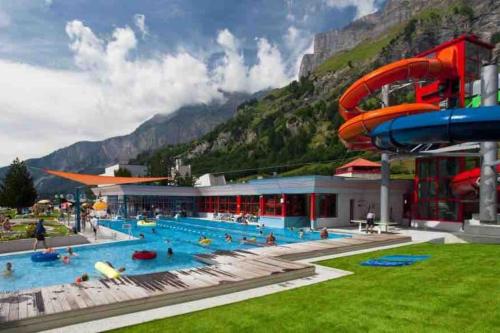 Gelegen 31 km von Golf-Club Crans-sur-Sierre, 37 km von Golf Club de Sion und 1,1 km von Sportarena Leukerbad, bietet die Unterkunft DOMINO - Superbe studio de standing Übernachtungsmöglichkeiten in Leukerbad. Diese Unterkunft bietet Zugang zu einem Balkon, einem kostenlosen Privatparkplatz und kostenlosem WLAN.