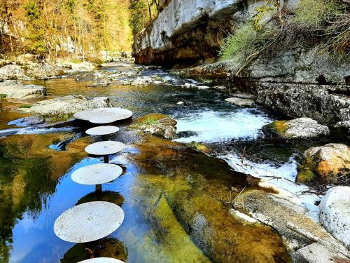 Mit einem Garten und Seeblick, ist die Unterkunft un ptit chalet gelegen in Les Brenets, 14 km von Internationales Uhrenmuseum und 30 km von Creux du Van entfernt. Diese Unterkunft bietet Zugang zu Tischtennis, einem kostenlosen Privatparkplätzen und kostenlosem WLAN.