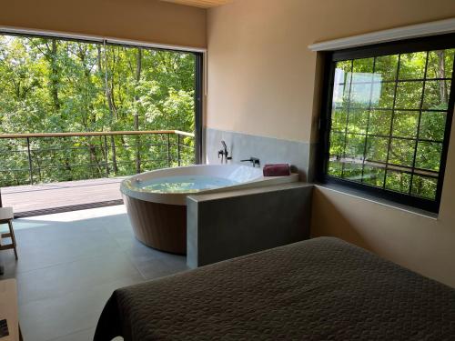 Der Wellnessbereich der Unterkunft Chado Belgrade besteht aus einer Sauna und einem Whirlpool.