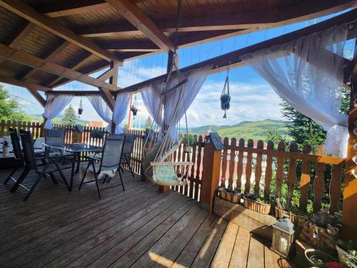 Dieses Chalet mit einer Terrasse und Bergblick bietet 2 Schlafzimmer, ein Wohnzimmer, einen Flachbild-TV, eine gut ausgestattete Küche sowie 1 Badezimmer mit einer Dusche.