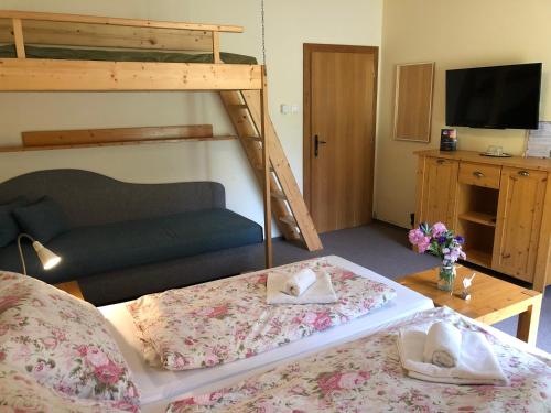 Jede Unterkunft in der Penzion Bystrinka verfügt über einen TV und ein eigenes Bad mit einer Dusche und kostenlosen Pflegeprodukten. Einige Unterkünfte bieten zudem einen Balkon und Bergblick. Eine Gemeinschaftslounge steht allen Gästen zur Verfügung.
