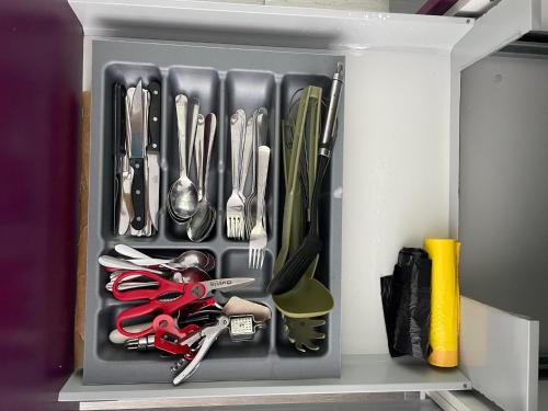 Die Unterkunft ist ausgestattet mit einer Klimaanlage, einer voll ausgestatteten Küche mit einem Essbereich, einem Flachbild-TV und einem eigenen Badezimmer mit einer Dusche, kostenlosen Pflegeprodukten und einem Haartrockner. Es gibt einen Kühlschrank, einen Geschirrspüler und einen Ofen sowie eine Kaffeemaschine und einen Wasserkocher.