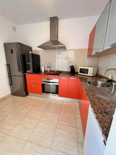 Diese Ferienwohnung mit einer Terrasse und Meerblick hat 2 Schlafzimmer, ein Wohnzimmer, einen Flachbild-TV, eine gut ausgestattete Küche mit einem Kühlschrank und einem Geschirrspüler sowie 1 Badezimmer mit einer Dusche. In dieser Ferienwohnung werden Handtücher und Bettwäsche angeboten.