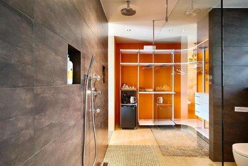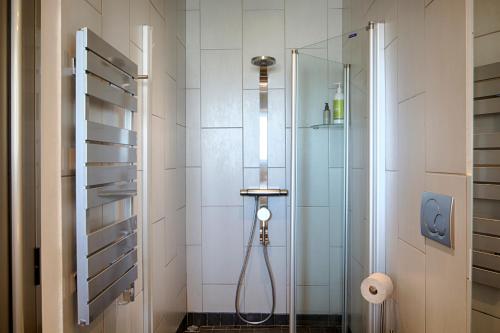 In jeder Wohneinheit sind ein eigenes Badezimmer mit einer Dusche sowie kostenlosen Pflegeprodukte, ein Haartrockner und Hausschuhe vorhanden.
