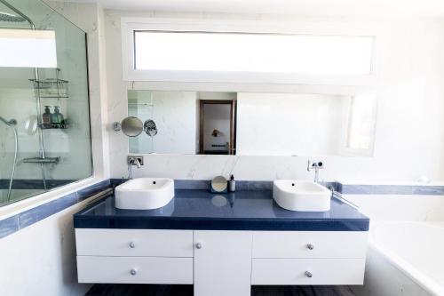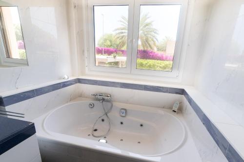 Diese Villa mit Klimaanlage bietet außerdem einen Flachbild-TV sowie eine voll ausgestattete Küche mit einem Kühlschrank, einen Sitzbereich, eine Waschmaschine und 5 Badezimmer mit einem Bidet, einer Dusche und einer Badewanne.