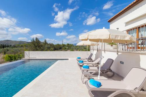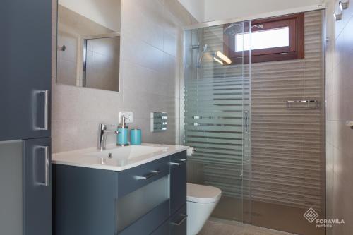 Diese Villa ist versehen mit 2 Schlafzimmern, 3 Badezimmern, Bettwäsche, Handtüchern, einem TV mit Satellitenkanälen, einem Essbereich, einer voll ausgestatteten Küche und einer Terrasse mit Bergblick.
