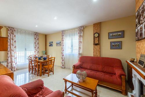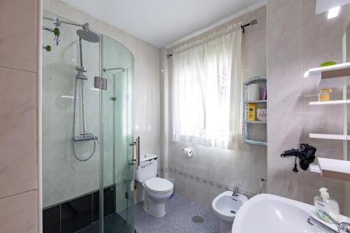 Dieses Ferienhaus mit einer Terrasse und Bergblick hat 4 Schlafzimmer, ein Wohnzimmer, einen Flachbild-TV, eine gut ausgestattete Küche mit einem Kühlschrank und einem Geschirrspüler sowie 4 Badezimmer mit einem Bidet. In diesem Ferienhaus werden Handtücher und Bettwäsche zur Verfügung gestellt.