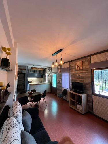 Dieses Ferienhaus mit einer Terrasse und Bergblick bietet 3 Schlafzimmer, ein Wohnzimmer, einen Flachbild-TV, eine gut ausgestattete Küche mit einem Kühlschrank und einem Ofen sowie 1 Badezimmer mit einer Dusche. In diesem Ferienhaus werden Handtücher und Bettwäsche angeboten.