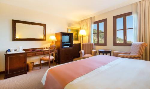 Die Zimmer des Hotels Es Moli bieten kostenloses WLAN, Klimaanlage, Schreibtisch, Safe, Tee- und Kaffeezubereitungsmöglichkeiten, Sat-TV, Telefon, Minibar und Zimmerservice (nur im Hauptgebäude).