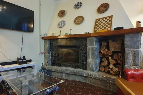 Dieses Ferienhaus mit einem Balkon und Bergblick hat 1 Schlafzimmer, ein Wohnzimmer, einen Flachbild-TV, eine gut ausgestattete Küche mit einem Kühlschrank und einem Geschirrspüler sowie 2 Badezimmer mit einem Bidet. In diesem Ferienhaus werden Handtücher und Bettwäsche angeboten.